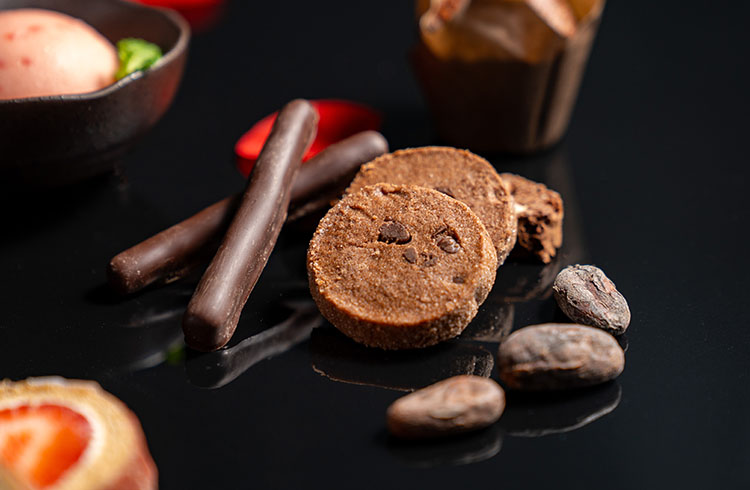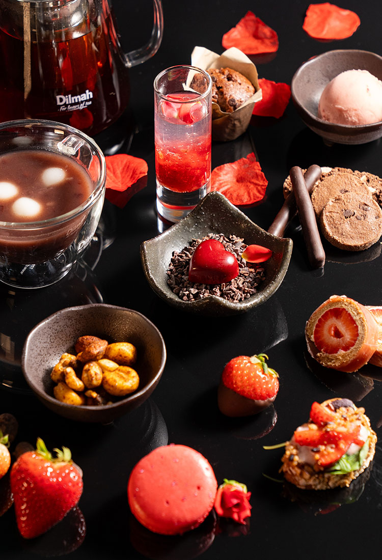国産いちごの艶やかな赤と、チョコレートの深い色合いが誘う、午後を彩るアフタヌーンティー。シェフが厳選した素材と遊び心あふれるアレンジで、甘美なひとときをお届けします。