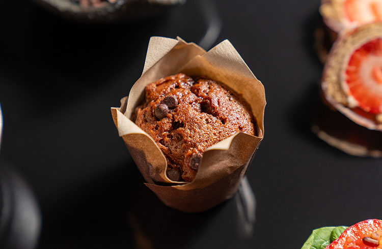 チョコレートチップを練り込んだ生地に、濃厚なチョコクリームを忍ばせた贅沢マフィン。