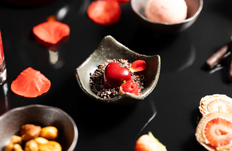 艶やかな色合いが愛らしいハート型のチョコレート。ひと口かじると、甘酸っぱいパッションフルーツのジュレとガナッシュが口いっぱいに広がり、ミルクチョコレートがまろやかにまとめる贅沢な味わい。